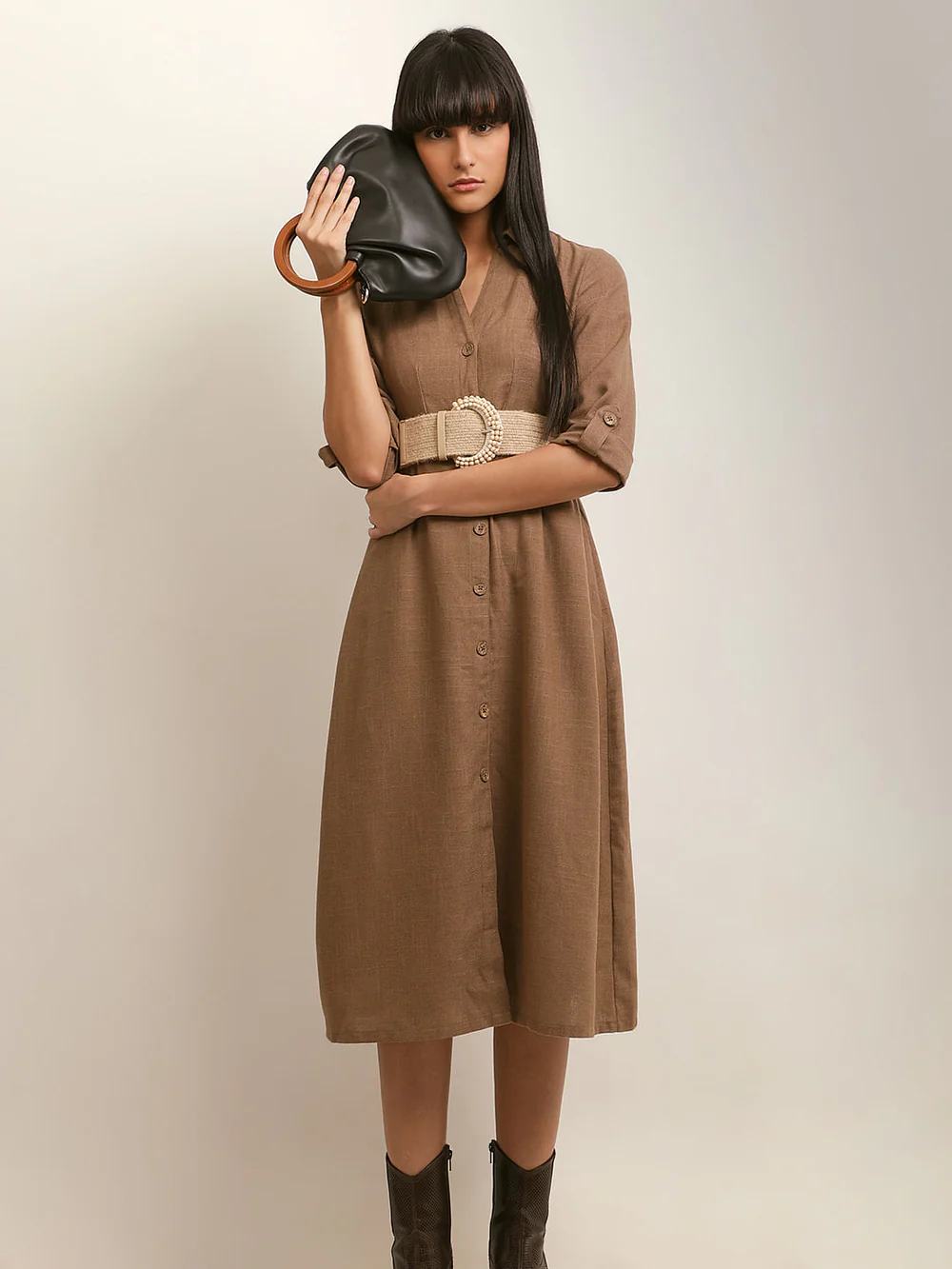 Be the first to review “BROWN MIDI SHIRT DRESS”